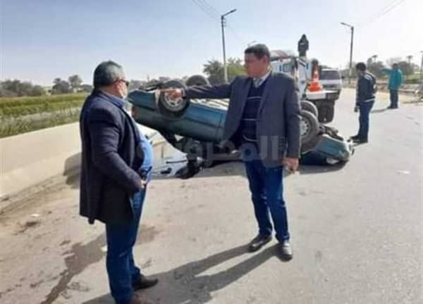 فيما أصيب سائق في حادث تصادم سيارة رقم 4921 ع ص ا ربع نقل، بتروسيكل، بطريق الصعيد الزراعي السريع جنوب كمين بني أحمد بمركز المنيا.