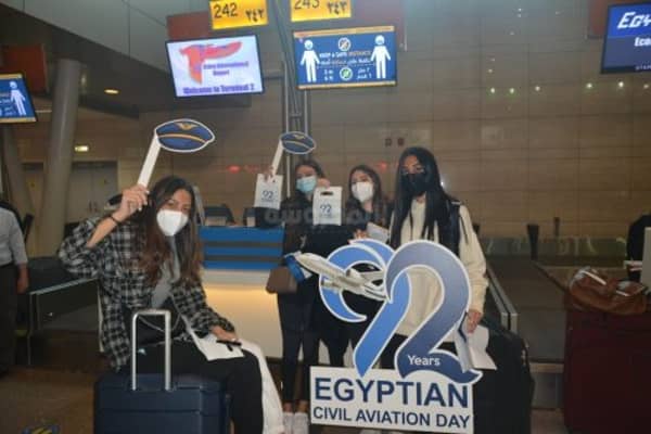 كما شملت الاحتفالات التى نظمها المركز الإعلامى بوزارة الطيران المدنى بالتنسيق مع شركة مصر للطيران وشركة ميناء القاهرة الجوى والشركة المصرية للمطارات قيام فرق من العلاقات العامة بهذه الشركات بتوزيع الشوكولاته والورود والهدايا التذكارية التي تحمل شعار الاحتفال على المسافرين بمختلف المطارات المصرية والذين حرصوا على التقاط صور تذكارية لهم بهذه المناسبة مع الالتزام بتطبيق كافة الإجراءات الاحترازية والوقائية .