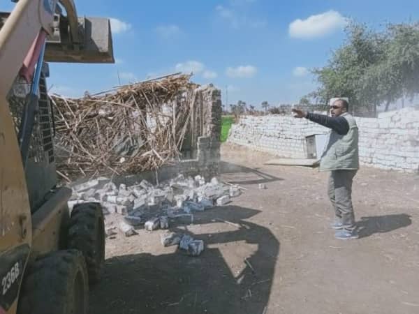 إزالة 36 حالة تعد بالبناء على الأراضي الزراعية بمركزي سمالوط وديرمواس بالمنيا
