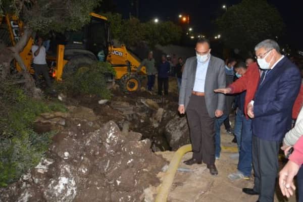 كما شدد المحافظ، على سرعة الإنتهاء من أعمال إصلاح خط الطرد، وشفط المياه من الأماكن المتضررة والوصول إلى العطل لعمل حل جذرى لعدم تكرار المشكلة، مع بحث ودراسة أسباب الكسر، كما وجه المحافظ مجلس مدينة المنيا بسرعة احتواء تداعيات الكسر المفاجئ الذى حدث .