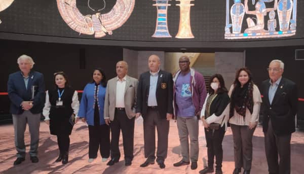 وقد قامت الدكتورة ماريان، أمينة المتحف، باصطحاب الوفود في جولة داخل قاعة العرض المركزية وقاعة المومياوات الملكية، وتعريفهم بمقتنيات المتحف الفريدة والتي تعود إلى حقب زمانية مختلفة من الحضارة المصرية.