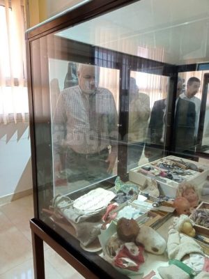 ومن جانبه تفقد المهندس سامي معجل رئيس مركز ومدينة الحسينية مقتنيات المتحف والتي تضم بقايا الأدوات المدرسية من (سبورة – تخت مدرسية)، بالإضافة إلى متعلقات التلاميذ من “كراريس” و”كشاكيل” و”أقلام” و”مريلة” مدرسية ملطخة بالدماء ، مشيداً بطريقة العرض المتحفيه الحديثة والتي تتلائم وتتماشى مع ما هو موجود في المتاحف المصرية وذلك بعد أن تم وضعها بصناديق عرض زجاجية محكمة الغلق لتأمينها والحفاظ عليها من العوامل الجوية.