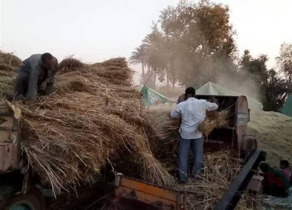 واصل آلاف المزارعين بمحافظة المنيا، موسم حصاد وتوريد القمح، لمساحة 250 ألف فدان بمتوسط إنتاجية من 18-20 إردب للفدان، من العدوه شمالا حتى دير مواس جنوبا.