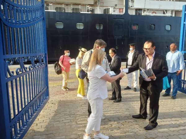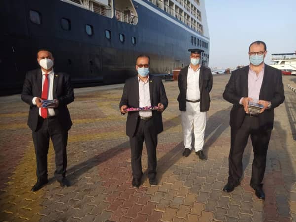 هذا وقد كان في إستقبال السفينة السياحية اللواء بحري حسام الرويني – نائب رئيس مجلس إدارة الهيئة العامة لميناء الاسكندرية للتشغيل ، واللواء حسام الصغير – مدير الإدارة العامة لشرطة الميناء ، وعدد من قيادات الهيئة العامة لميناء الاسكندرية الذين شددوا على إتخاذ كافة الإجراءات الإحترازية لتتلاءم مع الإرشادات الواردة بخطط إدارة الموانئ لمواجهة جائحة فيروس كورونا ، وتتطابق الإجراءات مع التوصيات التي تنصح بها الوكالة الأوروبية للأمن البحري EMSA ومنظمة الميدكروز المعنية بالسياحة البحرية ضمن خطط استئناف الرحلات السياحية .