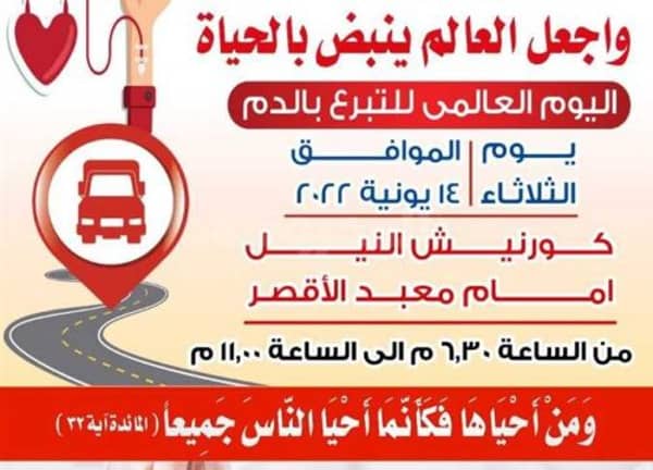 أعلن اللواء أسامة القاضي محافظ المنيا، إطلاق المركز الإقليمي لنقل الدم وتجميع البلازما بالمحافظة، حملة للتبرع بالدم، تزامنا مع اليوم العالمي للتبرع بالدم، وذلك من خلال أول مركز متنقل للتبرع بالدم على مستوي الصعيد، بعنوان «حملة إنقاذ حياة»، حرصا على سلامة وصحة المواطنين.