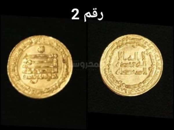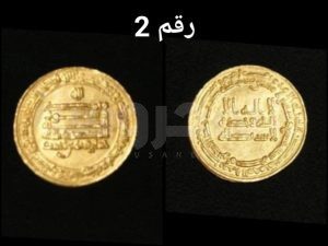والقطعة الثانية مكتوب على الوجه: لا إله إلا الله محمد رسول الله، وعلى الظهر الدينر المنقوط الخليفة العزيز بالله، وترجع للعصر الفاطمي.