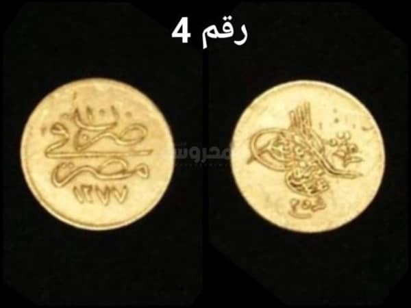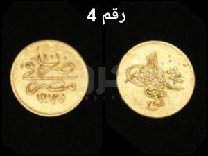 والقطعة الرابعة تتضمن رسما لطغراء باسم السلطان عبد العزيز عز نصره، وعلى الظهر: ضرب بمصر 1277، وترجع للعصر العثماني