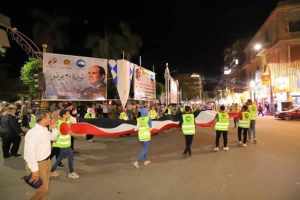 يحتفل أهالي المنيا بالذكرى التاسعه لثورة 30 يونيو المجيدة وانجازات الجمهوريه الجديدة حيث تنظم مديرية الشباب والرياضه مسيرة مساء اليوم السبت يتقدمها اللواء اسامه القاضى محافظ المنيا تنطلق من أمام النادي الرياضي بكورنيش النيل بمشاركة أهالي المحافظة استمرارا لاحتفالات المنياويه بالثورة المجيدة.