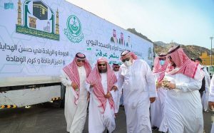 دشّن معالي الرئيس العام لشؤون المسجد الحرام والمسجد النبوي الشيخ الدكتور عبدالرحمن بن عبدالعزيز السديس اليوم ، حملة زمزم المبارك إلى حجاج بيت الله الحرام في مشعر عرفات التي تنفذها الرئاسة بالتعاون مع لجنة السقاية والرفادة بإمارة منطقة مكة المكرمة ، وذلك لتوفير ماء زمزم المبارك لضيوف الرحمن خلال أدائهم مناسك الحج بمشعر عرفات.
