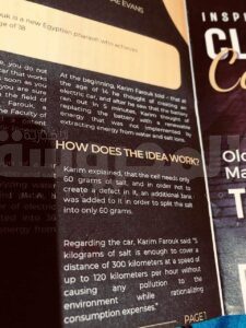 صاحب براند 2series وصاحب شركه mechanical eg وحصل علي براءه اختراع لسياره تعمل بالماء والملح ودخل مسابقات دوليه وحصل علي كثير من الجوائز والمراكز الدوليه ومضي عقد مبدئي مع الهيئه العربيه للتصنيع،وكماأنه لديه موهبه الكتابه أيضا وكتب تجربته للشباب في كتاب اسمه أبدا منين وواصل نجاحه مؤخرا بأن مجله smithsonian هي مجله اخباريه تقوم بنشر مجالتها شهريا عن ابرز الاشياء والاشخاص الماثره والمثيره للجدل