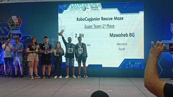 وأشارت رئيس قطاع البحث العلمي بمؤسسة مصر الخير ،إلى أن فريق Mawaheb BG استطاع تحقيق المركز الأول علي مستوى البطولة كلها والميدالية الذهبية علي مستوى العالم ، فى كاتيجورى Rescue Maze فى قسم Super team ، ومشروعهم كان عبارة عن إنشاء وبرمجة روبوت قادر علي حل لغز متاهة تحتوى علي أطفال موجودة فى خطر من حرائق وغيره ومهمة الروبوت إنقاذهم وفيها كذا صعوبة بمستويات مختلفة ومفاجآت بتقابل الروبوت فى طريقه فى حل لغز المتاهة وإنقاذ الأطفال .