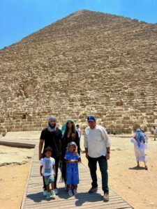 وقد كان في استقبالهم شرف محيي الدين مدير عام منطقة آثار الهرم، حيث رافقهم في جوله داخل المنطقة، كما قدم لهم شرحاً عن تاريخ عصر بناة الأهرامات وطريقة بناء الهرم الأكبر العجيبة الوحيدة الباقية من عجائب الدنيا السبع للعالم القديم.