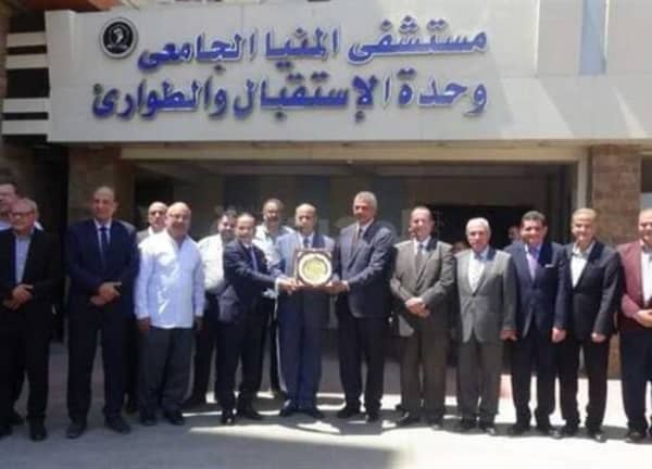 تكريم رئيس جامعة المنيا لمجهوداته المبذولة في قطاع المستشفيات