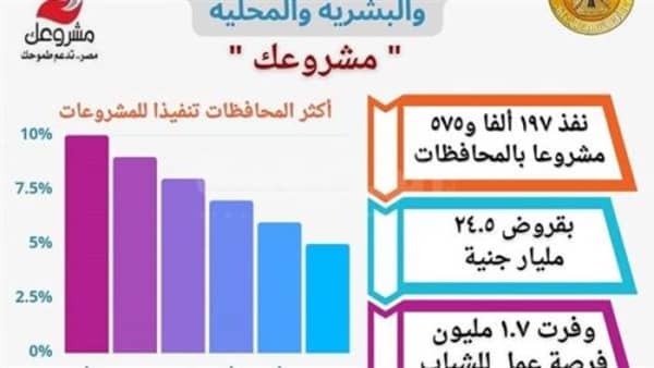 قال اللواء أسامة القاضي محافظ المنيا، إن اللواء هشام آمنة وزير التنمية المحلية، أعلن اليوم تصدر محافظة المنيا في إجمالي عدد المشروعات المنفذة ضمن المشروع القومي للتنمية المجتمعية والبشرية والمحلية “مشروعك”، حيث نفذت المحافظة 22،3 ألف مشروع بقروض بلغت 2،7 مليار جنيه مشروع بمدن ومراكز وقرى المحافظة، وتم من خلال تلك المشروعات توفير فرص عمل مباشرة وغير مباشرة لأبناء المحافظة.