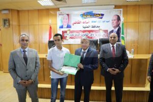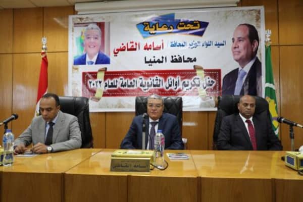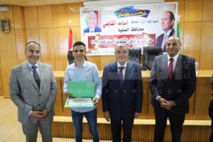 كرم اللواء أسامه القاضي، محافظ المنيا، يرافقه نائبه الدكتور محمد أبو زيد، أوائل الثانوية العامة على مستوي المحافظة، والبالغ عددهم 37 طالبا وطالبة، بالشعب الثلاث العلمية والرياضية والأدبية، وذلك في الاحتفالية، التي أقامتها المحافظة، تقديرا لتميزهم وتحفيزًا لهم على مواصلة التفوق.