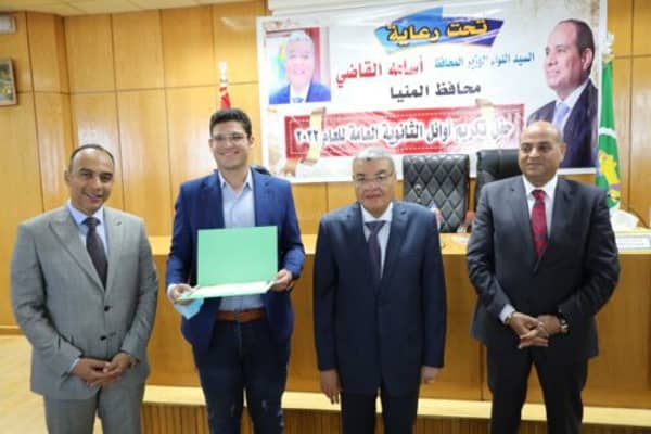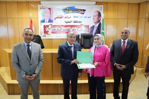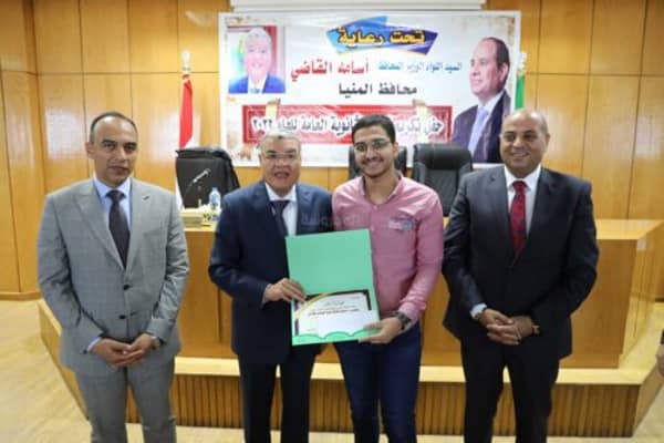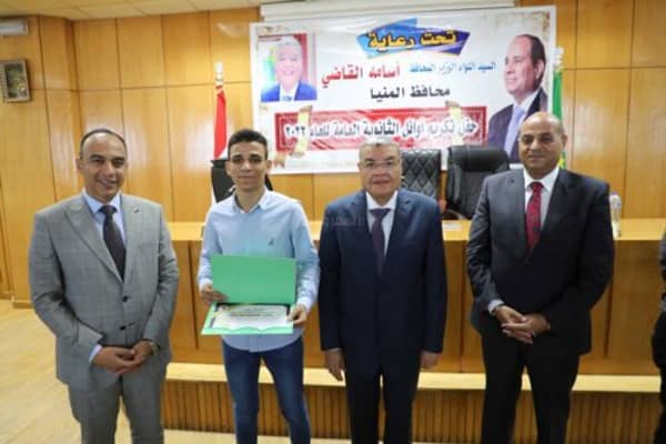 كرم اللواء أسامه القاضي، محافظ المنيا، يرافقه نائبه الدكتور محمد أبو زيد، أوائل الثانوية العامة على مستوي المحافظة، والبالغ عددهم 37 طالبا وطالبة، بالشعب الثلاث العلمية والرياضية والأدبية، وذلك في الاحتفالية، التي أقامتها المحافظة، تقديرا لتميزهم وتحفيزًا لهم على مواصلة التفوق.