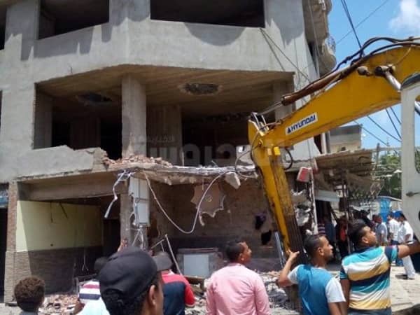 المحافظة تنفذ قرار إزالة حتي سطح الأرض لعقار مكون من 12 دور ناصية شارع حسني حماد تقاطع شارع قنال المحمودية
