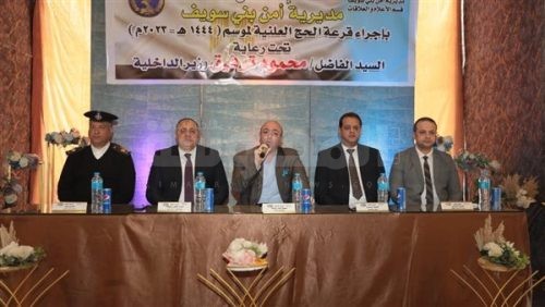 شهد الدكتور محمد هاني غنيم محافظ بني سويف واللواء أسامة حلمي مساعد وزير الداخلية مدير الأمن، مراسم قرعة الحج العلنية لمديرية أمن بني سويف للعام الحالى (1444هـ /2023م)،والتي تقام تحت رعاية وزارة الداخلية، وذلك بقاعة نادي ضباط الشرطة بمدينة بني سويف ،وفي حضور عدد من القيادات الأمنية والتنفيذية