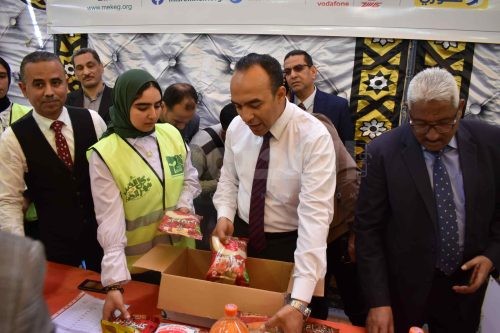 نائب محافظ المنيا يتفقد أعمال تجهيز 3500 كرتونة مواد غذائية ويشارك متطوعي "مصر الخير" في أعمال التعبئة