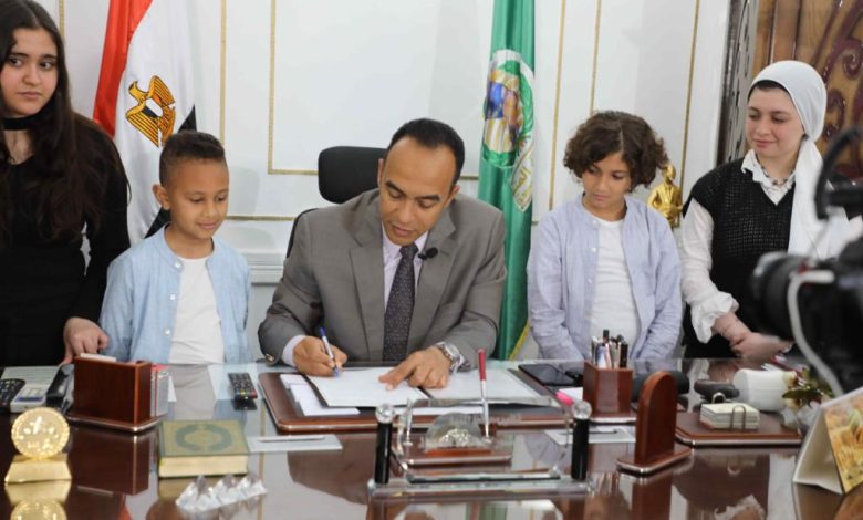 نائب محافظ المنيا يلتقي عدد من الطلاب قبيل زيارتهم للمشروعات القومية بقرية المعصرة بمركز ملوي