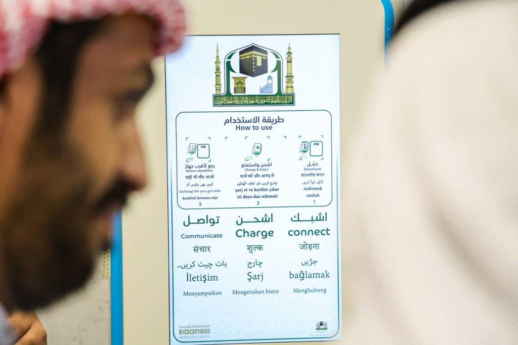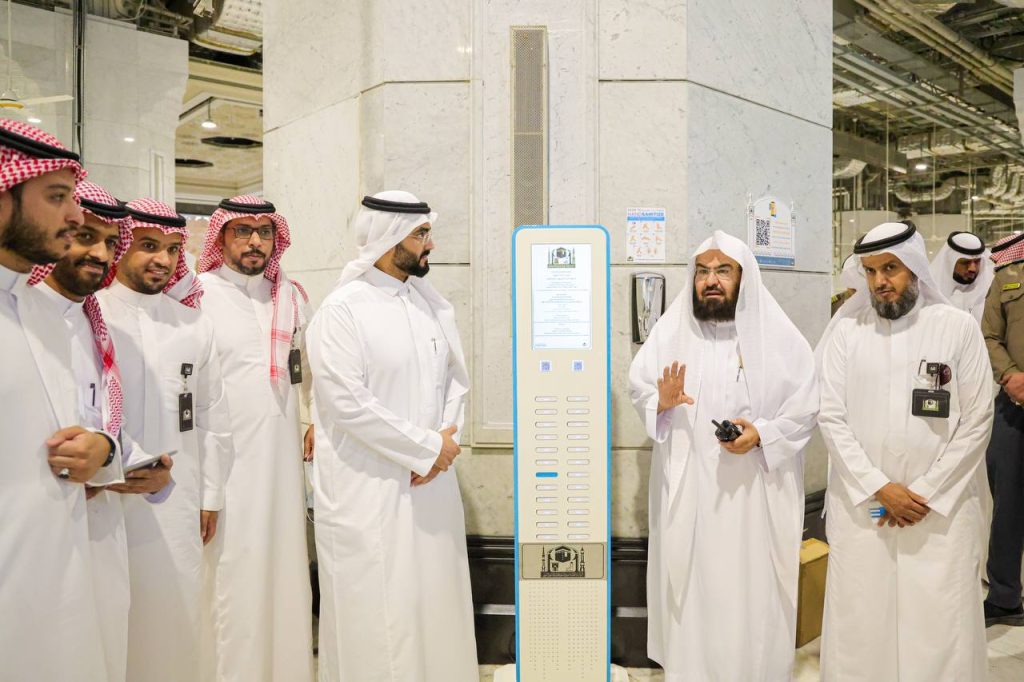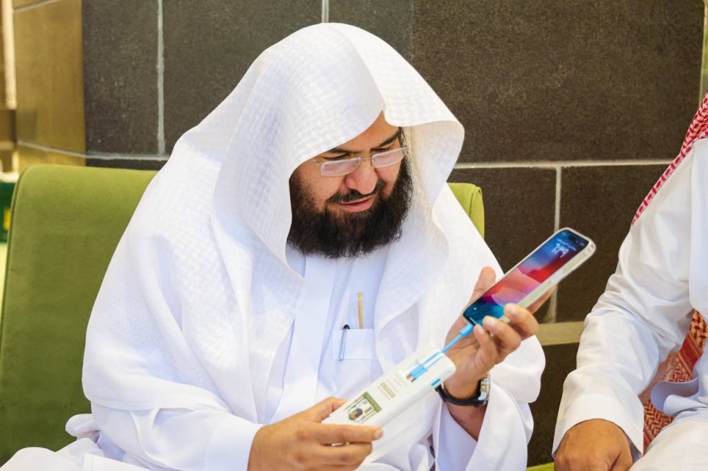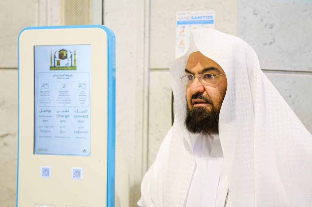 دشن معالي الرئيس العام لشؤون المسجد الحرام والمسجد النبوي الشيخ الدكتور عبدالرحمن بن عبدالعزيز السديس منصة الشحن المتنقلة لشحن أجهزة الجوال، وذلك خدمة لضيوف الرحمن والمعتكفين بالمسجد الحرام.