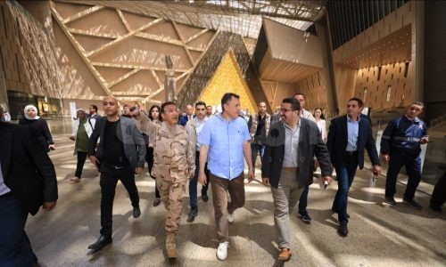 وزير السياحة والآثار يقوم بجولة تفقدية بالمتحف المصري الكبير للوقوف على مستجدات الأعم