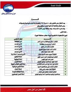 “المحروسة نيوز ” تنشر التشكيل الكامل لأمانة حزب مستقبل وطن بمحافظة الجيزة