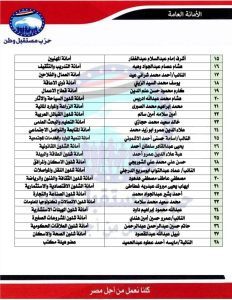 • النائب سيد أحمد سيد “عمرو القطامي”، لأمانة شئون المجالس المحلية.