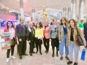 بعد اختيار المقصد السياحي المصري ليكون الوجهة السياحية لرحلة النادي الدولي للسيدات بدولة اليونان لقضاء الإجازة السنوية لأعضائه هذا العام، وصل مساء أمس إلى مطار القاهرة الدولي وفد رفيع المستوى من أعضاء النادي، وكان في استقبالهم الأستاذة نسرين عثمانلي مدير مكاتب الهيئة المصرية العامة للتنشيط السياحي بمطار القاهرة الدولي وعدد من أعضاء المكاتب، حيث تم الترحيب بالوفد وتقديم باقات الورود والهدايا التذكارية والنشرات والمواد الدعائية عن المقصد السياحي المصري.