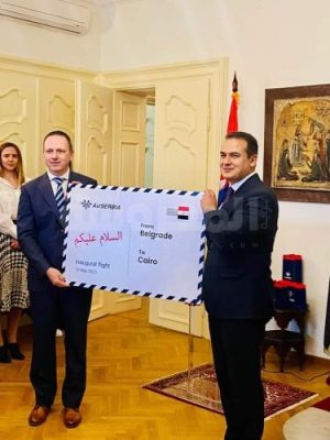 The Embassy of the Arab Republic ofEgypt in Serbia marked today the launch of direct flights between Cairo and Belgrade on 15 May 2023 for three flights weekly via the Serbian national air carrier, represented by Air Serbia; which will contribute to strengthening the bilateral relations of the two brotherly countries and enhance trade volume and tourism movement patterns between Egypt and Serbia