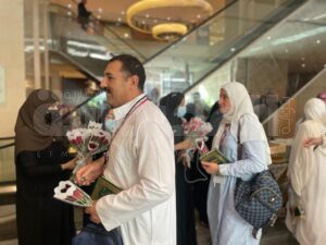 هذا وقد وصلت البعثةإلى فندق أنوار المدينة موفنبيك الذي وظَّف جُلَّ طاقاته لإنهاء إجراءات تسكين الفوج في أسرع وقت، وذلك بحضور قيادات الفندق ورجال الإعلام وقناةCBCالفضائية المصرية.