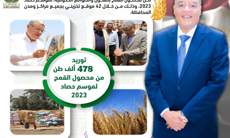 محافظ المنيا: شون وصوامع المحافظة تواصل استقبال القمح وتوريد 478 ألف طن من المحصول