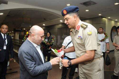 وكان فى إستقبال اللاعبين فور وصولهم إلى أرض الوطن وفد رسمى من جهاز الرياضة للقوات المسلحة إحتفاءاً بما حققوه من نتائج متميزة .