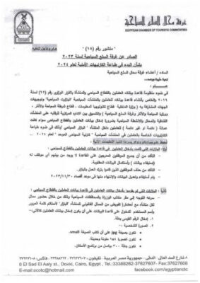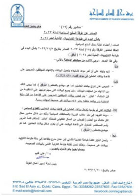 وقال غنيم، في خطاب للبازارات ومحال السلع السياحية، إنه طبقا للقرار الوزاري رقم 62 لسنة 2019 والخاص بإنشاء قاعدة بيانات العاملين بالقطاع السياحي، المشتركة بين وزارة الداخلية ممثلة في قطاع تكنولوجيا المعلومات، وشرطة السياحة والآثار، ووزارة السياحة، والغرفة، فإنه يلزم قيام كل بازار بإدخال بيانات العمالة لديه سواء دائمة أو غير دائمة، تزامنا مع الاستعدادات الجارية لإصدار الكارنيهات الأمنية للعاملين لعام 2024.