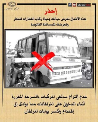 النقل تناشد المواطنين المشاركة في التوعية بضروة الالتزام بعدم اقتحام المزلقان او السير عكس الاتجاه أثناء غلقه