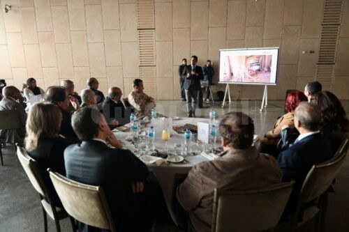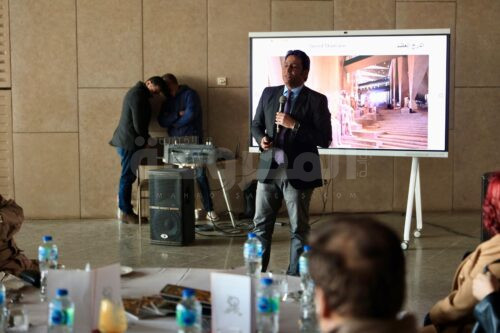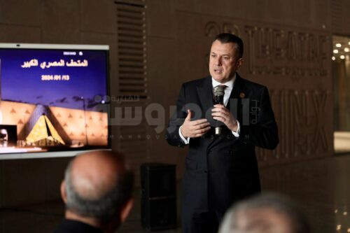 كما استعرض اللواء عاطف مفتاح المشرف العام على مشروع المتحف المصري الكبير والمنطقة المحيطة به، من خلال عرض تقديمي، أعمال البناء والإنشاء وقاعات العرض المتحفي ومنطقة الخدمات الموجودة به، مشيراً إلى أهم العوامل التي يتفرد بها المتحف دون غيره من متاحف العالم والمتمثلة في عرض للحضارة المصرية القديمة وما بها من غموض دائم واكتشاف مستمر، وكذلك التصميم المعماري المتفرد له وربط المشروع بمنطقة أهرامات الجيزة، وما حققه فريق العمل من مرممي وأثري المتحف من نجاح في عمليات نقل القطع الأثرية الكبيرة بفكرهم الواعي والعمل الدؤوب، مؤكداً على أن ما يمتلكه المتحف المصري الكبير من عوامل متفردة سوف تستطيع الحفاظ على مقدرات الدولة بشكل كبير.