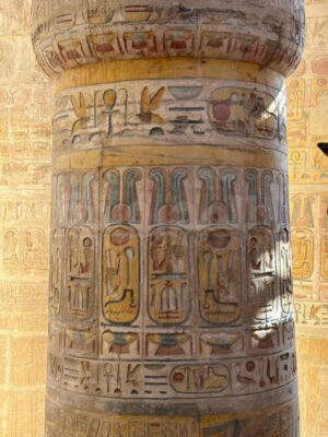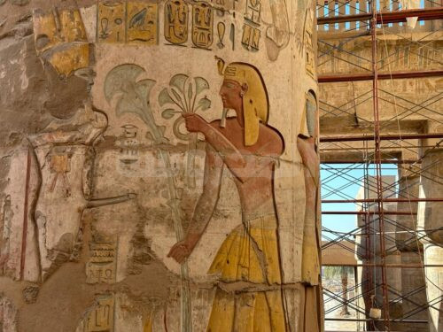 تجدر الإشارة إلى أن مشروع ترميم صالة الأعمدة الكبرى بمعابد الكرنك بدأ في يوليو 2021، حيث تم الإنتهاء من المرحلة الأولي منه والتي شملت ترميم وإظهار النقوش الأصلية لعدد 28 عمود من أصل 134 عمود بالصالة.