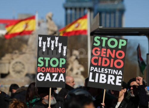 تظاهر آلاف الأشخاص في مدريد ومدن إسبانية أخرى، اليوم (السبت)، حاملين الأعلام الفلسطينية ومردّدين شعارات مناهضة لإسرائيل، مطالبين بـ«وقف الإبادة في فلسطين».