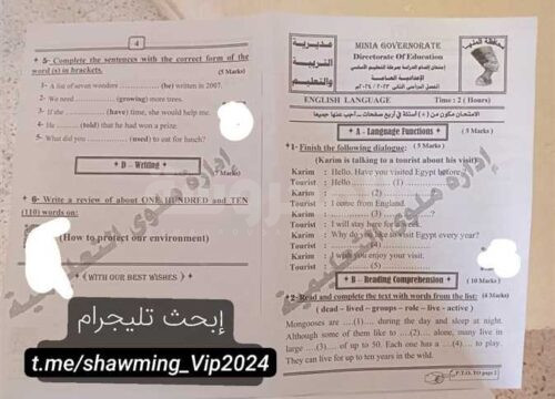 تداول عدد من أولياء أمور طلاب الشهادة الإعدادية في المنيا، اليوم، السبت 18 مايو 2024، امتحان مادة اللغة الأجنبية الأولي (الإنجليزي) لامتحانات الفصل الدراسي الثاني، للعام الدراسي 2023-2024، عقب بدء الامتحانات بدقائق، مما أثار غضب الطلاب المتميزين المجتهدين، الرافضين للغش .