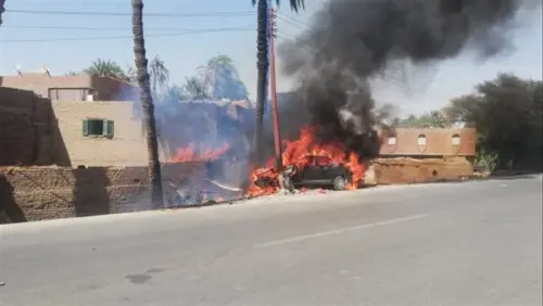 اشتعلت النيران بسيارة خاصة بأحد البنوك إثر اصطدامها بنخلة، على طريق قرية الشغبة التابعة إلى مركز أسيوط.