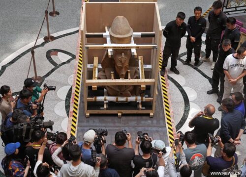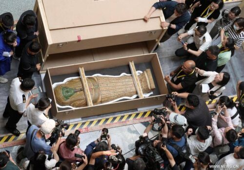 تم تفريغ تابوت مومياء قادم من المتحف المصري في متحف شنغهاي لتكون من بين 788 قطعة أثرية ستعرض في معرض الحضارة المصرية القديمة، حسب موقع “تشاينا نيوز”.