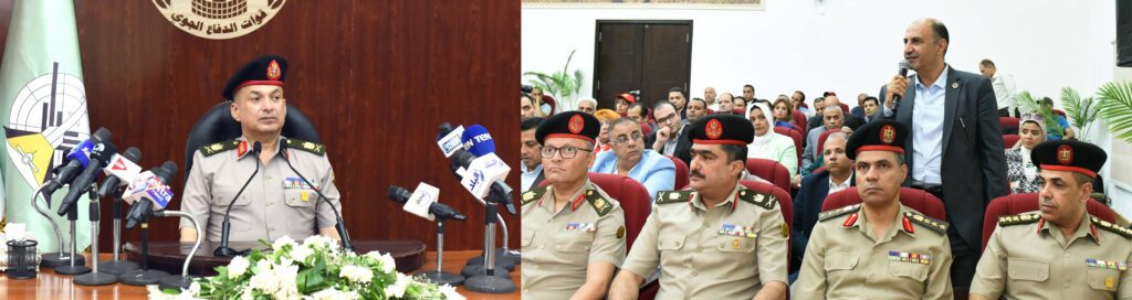 وبهذه المناسبة عقد اللواء أح / ياسر كمال الطودى قائد قوات الدفاع الجوى مؤتمراً صحفياَ أكد خلاله أن رجال الدفاع الجوى يواصلون الليل بالنهار للدفاع عن سماء الوطن بكل تفانى وإخلاص واضعين نصب أعينهم تطوير وتحديث أسلحتهم لزيادة قدراتهم القتالية لمجابهة ما يستجد من تهديدات وتحديات ، موجهاً التحية لأبطال ومقاتلى الدفاع الجوى الأوائل الذين وضعوا اللبنة الأولى فى إنتصار أكتوبر 1973 وضحوا بالغالى والنفيس لتظل راية الوطن عالية خفاقة .