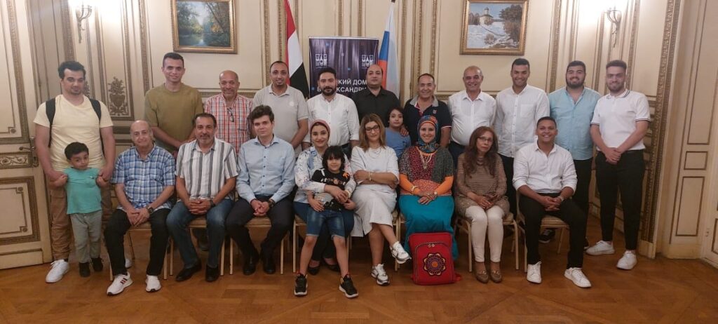 جاء ذلك خلال اللقاء الذي تم بمقر البيت الروسي بالإسكندرية بحضور وفد من جمعية خريجي الجامعات الروسية والسوفيتية ، ورحب ماتيوشينكو بوفد الخريجين مؤكداً ان التعاون مع جمعية الخريجين يعد أحد أهم اهتماماتنا ويعزز من هذا التعاون معرفتهم الطيبة بالثقافة الروسية واجادتهم للغة الروسية لذا يمثلون جسرا قويا في التواصل بين الثقافتين والشعبين .