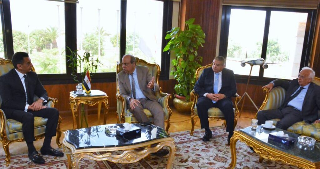 التقى الدكتور سامح الحفني وزير الطيران المدني ، عمر عريقات نائب رئيس المبيعات والتسويق بشركة بوينج لمنطقة الشرق الأوسط وإفريقيا وتركيا، وذلك في ضوء سلسلة اللقاءات التي يجريها وزير الطيران المدني مع كبرى الشركات العالمية بمجال النقل الجوي لتعزيز دور قطاع الطيران المدني داخل سوق الطيران العالمي،