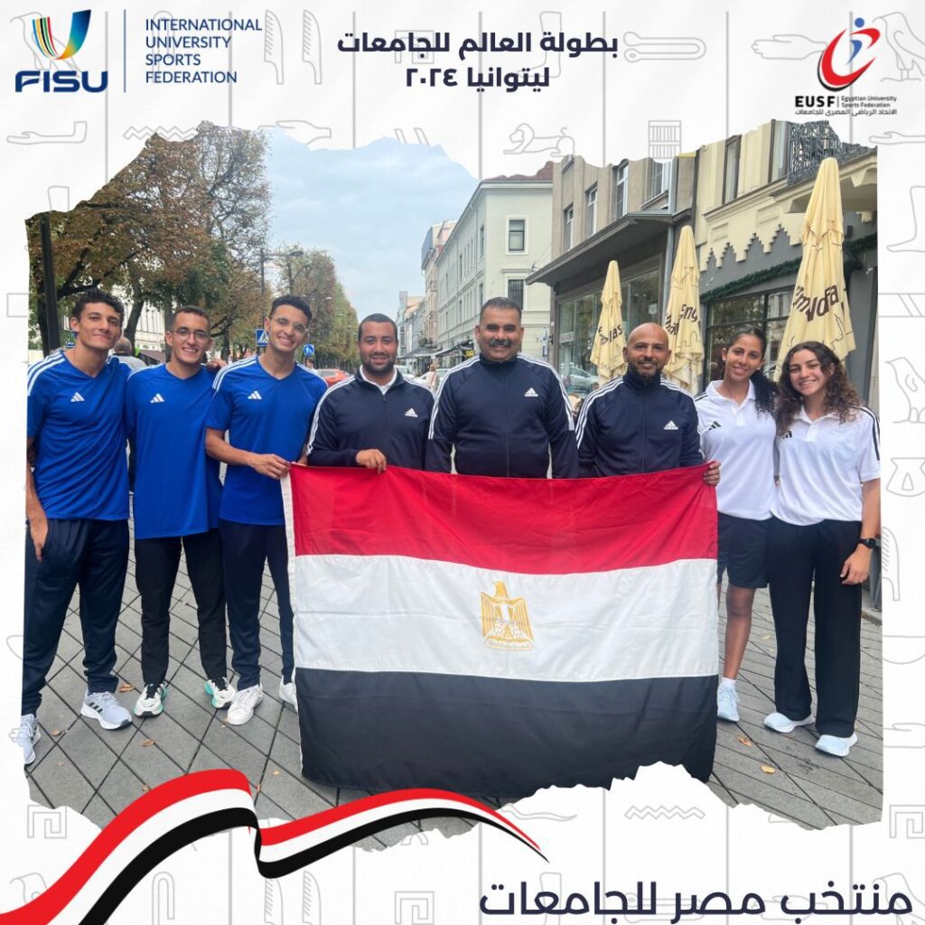 يرأس بعثة الاتحاد الرياضي المصري للجامعات د.عمرو علام الوكيل الدائم لوزارة التعليم العالي والبحث العلمي وأمين صندوق الاتحاد، وتضم البعثة الطالبتين زينة مصطفى من جامعة مصر المعلوماتية، وسالي أحمد من جامعة عين شمس، و3 طلاب، وهم مصطفى عمرو من الجامعة الكندية، ومعتز وائل من الأكاديمية العربية للعلوم والتكنولوجيا والنقل البحري، ومحمد الجندي شقيق البطل الأوليمبي أحمد الجندي صاحب ذهبية أوليمبياد باريس من جامعة مصر المعلوماتية، بالإضافة إلى جهاز فني متكامل، يضم كلاً من الكابتن أحمد يحيى مدربًا للفريق، والكابتن وائل حسني إداريًا للبعثة.