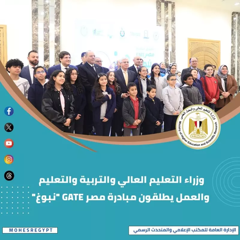 - أطلق الدكتور أيمن عاشور وزير التعليم العالي والبحث العلمي والسيد محمد عبداللطيف وزير التربية والتعليم والتعليم الفني، والسيد محمد جبران وزير العمل، مبادرة (مصر GATE “نبوغ”)، وأكد الدكتور أيمن عاشور أن الدولة المصرية تدعم كل ما يسهم في جهود الارتقاء بالعناصر البشرية لتحقيق التنمية، مشيرًا إلى وجود مراكز لدعم الطلاب المبتكرين والموهوبين والنوابغ بمختلف الجامعات المصرية؛ لتقديم كافة أوجه الدعم اللازم لتنمية مواهبهم وقدراتهم، ودعم جهود تطوير العملية التعليمية؛ مما سيسهم في تأهيل الطلاب ليكونوا قادرين على تقديم حلول مبتكرة للمشكلات التي تواجه المجتمع، ودعم جهود الدولة للتنمية في المستقبل.