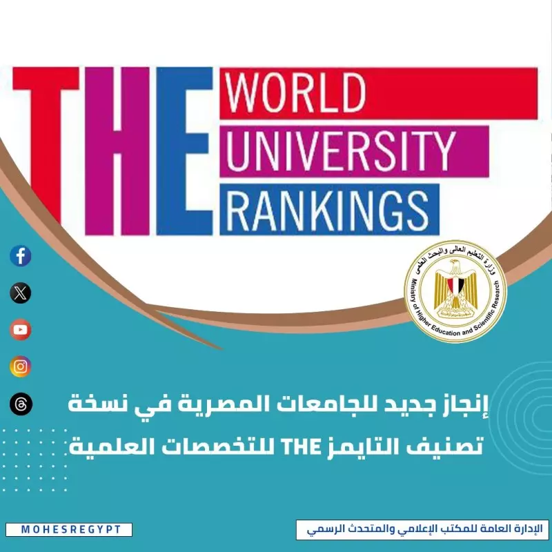 - أعلنت مؤسسة التايمز للتعليم العالي Times Higher Education نتائج نسخة التصنيف الخاص بالموضوعات لعام 2025، وأظهرت النتائج إدراج عدد من الجامعات المصرية في مختلف التخصصات العلمية التي شملها التصنيف، وأكد الدكتور أيمن عاشور وزير التعليم العالي والبحث العلمي، أن النتائج المتميزة التي تحققها الجامعات المصرية تعد مؤشرًا على الخطوات التي اتخذتها الوزارة ضمن الإستراتيجية الوطنية للتعليم العالي والبحث العلمي وتطبيق مبدأ المرجعية الدولية، منوهًا إلى أهمية التصنيفات العالمية كأداة استرشادية تسهم في تحسين الأداء للمؤسسات الأكاديمية والبحثية مع دول العالم المختلفة.