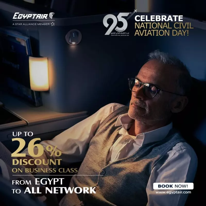 فى ضوء احتفالات وزارة الطيران المدنى بعيد الطيران المدني المصري 95 شاركت مصر للطيران_ الناقل الوطنى المصري فى الاحتفالات من خلال تقديم عروضاً خاصة واستثنائية لعملائها على تذاكر السفر من مصر إلى جميع وجهاتها الخارجية.