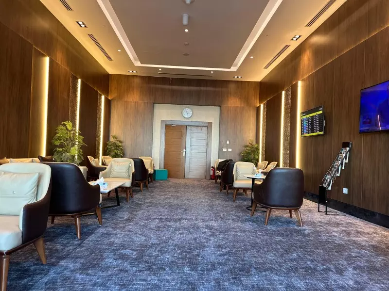 وعندما يحين وقت إقلاع رحلته يتم توصيل الراكب بسيارة خاصة حال أن الرحلة ( باص جيت ) او بالجولف كار لو الطائرة على إحدي كباري التحميل (تيوب ) .