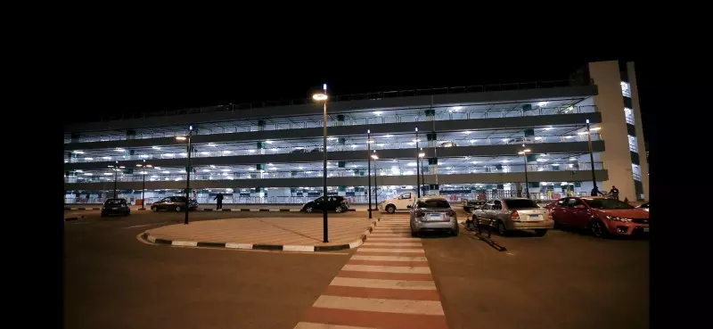الجراج متعدد الطوابق بمساحة 90,000 متر مربع يستوعب أكثر من 2250 سيارة، ومزود بكاميرات مراقبة، ونظام Park System لتحديد الأماكن الشاغرة، مع محطة طاقة شمسية لتوليد الكهرباء.